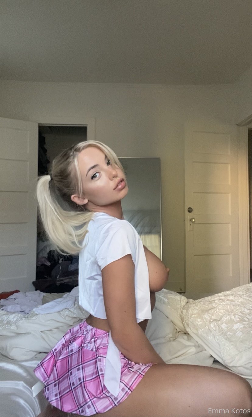 Emma Kotos pelada. Garota loira linda e fogoso com belo corpo perfeito, bunda redondinha, peitos grandes durinhos e linda bucetinha destacando por baixo da calcinha transparente. Loirinha sapeca com lindos conjuntos de couro se exibindo para os seguidores enlouquecidos. Gata de calcinha fio dental e sem blusinha deixando a mostra os belos peitos durinhos e naturais. Mocinha fogosa excitada usando conjunto de couro e mostra toda beleza natural.